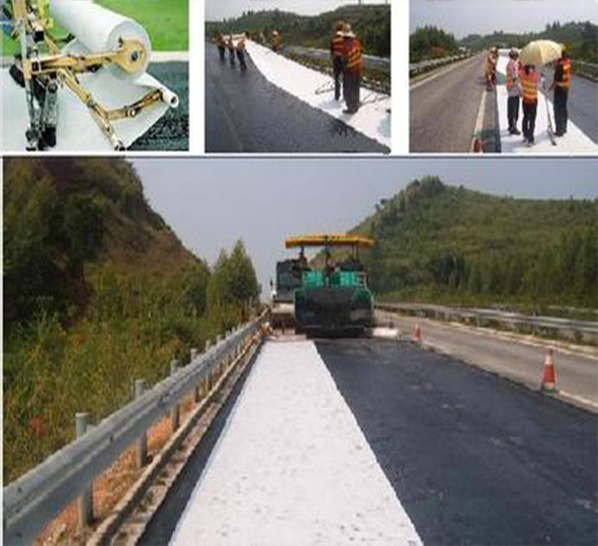 在熱拌瀝青混合料路面下安裝防水層,是保護(hù)和延長道路壽命的很好方法之一。一般材料的防裂布在高溫時(shí)會變形、損壞,聚酯玻纖布是由非織造玻纖/聚酯制造。可以經(jīng)受改性瀝青混凝土的高溫施工。聚酯玻纖布的這種高溫穩(wěn)定性將給路面提供一個(gè)連續(xù)、不變形的防水層,有效地防止水分滲透,避免因水分滲透而導(dǎo)致的路面層與基層的損壞。