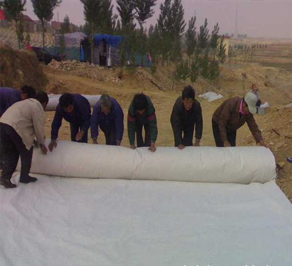 兩布一膜是以塑料薄膜作為防滲基材,與無紡布復(fù)合而成的土工防滲材料。它的防滲性能主要取決于塑料薄膜的防滲性能。目前防滲應(yīng)用的塑料薄膜,主要有聚氯乙烯(PVC)和聚乙烯(PE),它們是一種高分子化學(xué)柔性材料,比重較小,延伸性較強(qiáng),適應(yīng)變形能力高,耐腐蝕,耐低溫,抗凍性能好。膜的厚度一般為0.30-2.00mm。主要機(jī)理是以塑料薄膜的不透水性隔斷土壩漏水通道,以其較大的抗拉強(qiáng)度和延伸率承受水壓和適應(yīng)壩體變形。而無紡布亦是一種高分子纖維化學(xué)材料,通過針刺或熱粘成形,具有較高的抗拉強(qiáng)度和延伸性。目前應(yīng)用于復(fù)合的無紡布只要有:滌綸短纖針刺土工布、聚酯長絲紡粘土工布、扁絲塑編布等。它與塑料薄膜結(jié)合后,不僅增大了塑料薄膜的抗拉強(qiáng)度和抗穿刺能力,而且由于無紡布表面粗糙,增大了接觸面的摩擦系數(shù),有利于復(fù)合土工膜及保護(hù)層的穩(wěn)定。同時(shí),它們對(duì)細(xì)菌和化學(xué)作用有較好的耐侵蝕性,不怕酸、堿、鹽類的侵蝕。