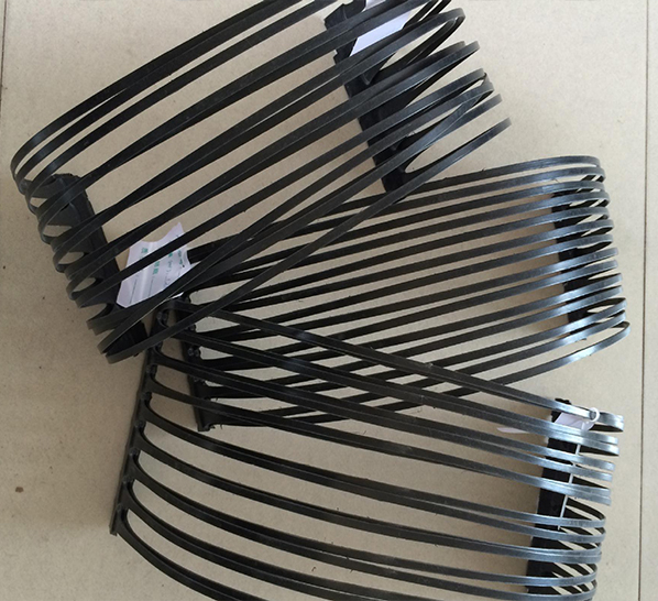 單向拉伸塑料土工格柵是一種高密度聚丙烯(PP)或聚乙烯(HDPE)為主要原料,加入一 定的防紫外線、抗老化助劑,經(jīng)過單向拉伸使原來分布散亂的鏈形分子重新定向排列呈線性狀態(tài),經(jīng)擠出壓成薄板再沖規(guī)則孔網(wǎng),然后縱向拉伸而成的高強(qiáng)度土工材料。這種過程中使高分子成定向線性狀態(tài)并形成分布均勻、節(jié)點(diǎn)強(qiáng)度高的長橢圓形網(wǎng)狀整體性結(jié)構(gòu)。此種結(jié)構(gòu)具有相當(dāng)高的拉伸強(qiáng)度和拉伸模量,抗拉強(qiáng)度達(dá)到100-200Mpa,接近低碳鋼的水平,大大優(yōu)于傳統(tǒng)的或現(xiàn)有的加筋材料,特別是我公司此類產(chǎn)品更具有很高水平的高早期(伸長率在2%—5%)拉伸強(qiáng)度和拉伸模量。給土壤提供了理想的力的承擔(dān)和擴(kuò)散的連鎖系統(tǒng)。該產(chǎn)品拉伸強(qiáng)度大(>150Mpa),適應(yīng)各種土壤,是目前廣為采用的加筋加固材料。