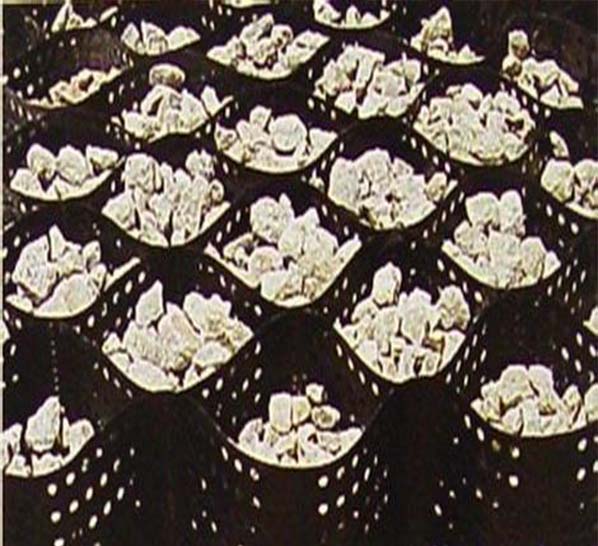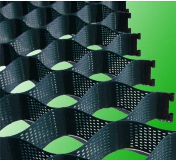 土工格室是由高強(qiáng)度的HDPE或PP共聚料寬帶,經(jīng)過(guò)強(qiáng)力焊接或鉚接而形成的一片網(wǎng)狀格室結(jié)構(gòu)。它伸縮自如,運(yùn)輸時(shí)可縮疊起來(lái),使用時(shí)張開(kāi)并又充填土石或混凝土料,構(gòu)成具有強(qiáng)大側(cè)向限制和大剛度的結(jié)構(gòu)體。它可用來(lái)做為墊層,處理軟弱地基增大地基的承載能力,也可鋪設(shè)在坡面上構(gòu)成坡面防護(hù)結(jié)構(gòu),還可以用來(lái)建造支擋結(jié)構(gòu)等。