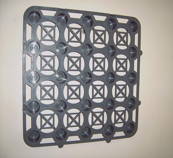 l 蓄排水板支撐面比較大,既不會因上覆無紡布下陷(如下圖)阻塞排水通道,也不會因無紡布拉力不足撕裂導(dǎo)致泥土進(jìn)入而阻塞排水通道,蓄排水板可以完整的保留排水空間,完全避免了塑料凸片因無紡布下陷導(dǎo)致排水不暢的情況發(fā)生,絕不會因排水不暢導(dǎo)致植被枯萎、死亡。
