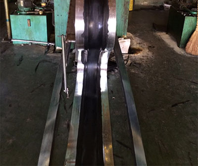 三、工藝流程:我們可以先將經(jīng)過先期處置的鍍鋅鋼帶拔出橡膠兩頭硫化成形,兩者之間的粘結(jié)力的結(jié)實性,具有分明防滲止水方面的效果。鋼邊止水帶的兩頭橡膠體在構(gòu)造變形時被緊縮、拉伸、變形,而起到密封止水作用;鍍鋅鋼帶與混凝土有著良好的粘附性,不易零落和松動,使止水帶能接受較大的拉力和扭力。在施工中由于混凝土澆筑時的宏大振動力和不易固定,會使普通橡膠止水帶發(fā)生移位、扯離、改變而呈現(xiàn)松動和零落,致使在水壓較大的狀況下會發(fā)生滲漏景象,而采用鋼邊橡膠止水帶時,由于鋼帶與混凝土、鋼帶與橡膠之間不會發(fā)生新的滲漏縫。